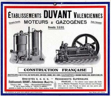 - Création d'une entreprise de mécanique générale, par Alfred Duvant et située au 1 rue d'Alsace à Valenciennes, quartier du faubourg de Paris